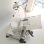 Máy thái lát thịt chín rất khỏe, các miếng thịt rất đều, bằng phẳng không bị vỡ vụn, rất bắt mắt. Bạn có thể tùy chỉnh được độ day mòng của lát thịt cắt ra trong khoảng từ 1 ~ 12 mm.